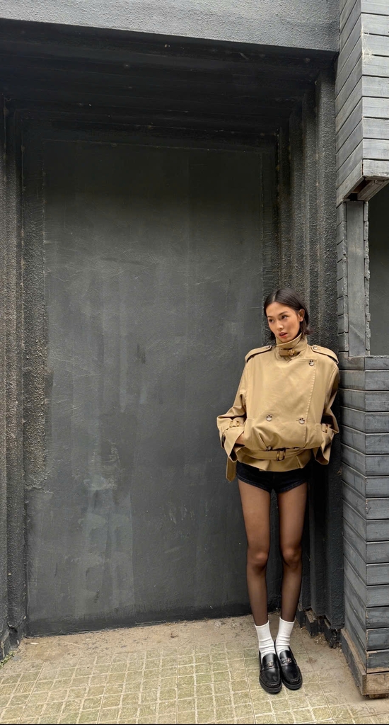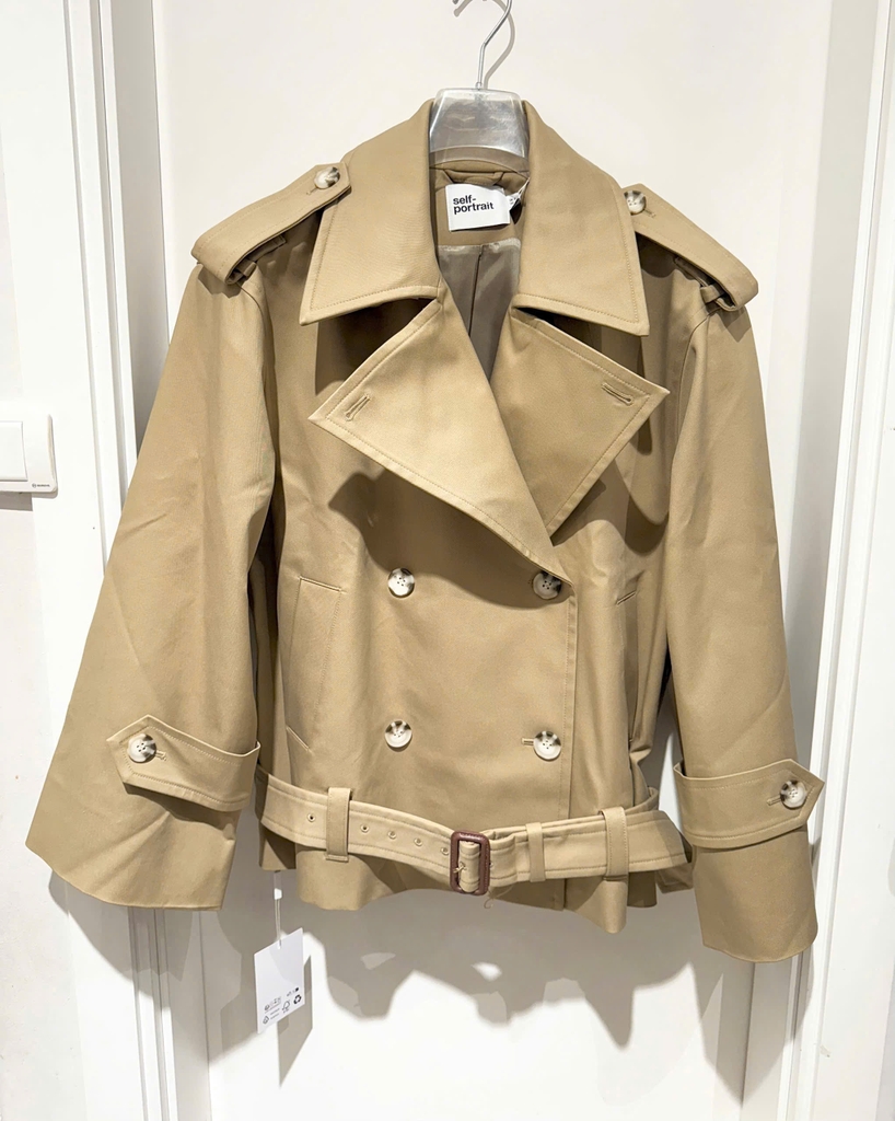 Một thiết kế hiện đại pha lẫn cổ điển từ Self-Portrait, mang hơi thở thanh lịch đặc trưng của phong cách Anh quốc. Phom dáng cropped trench coat trẻ trung, dễ phối cùng đầm, quần jeans hay chân váy – tạo nên vẻ ngoài thời thượng, tinh tế trong mọi hoàn cảnh.