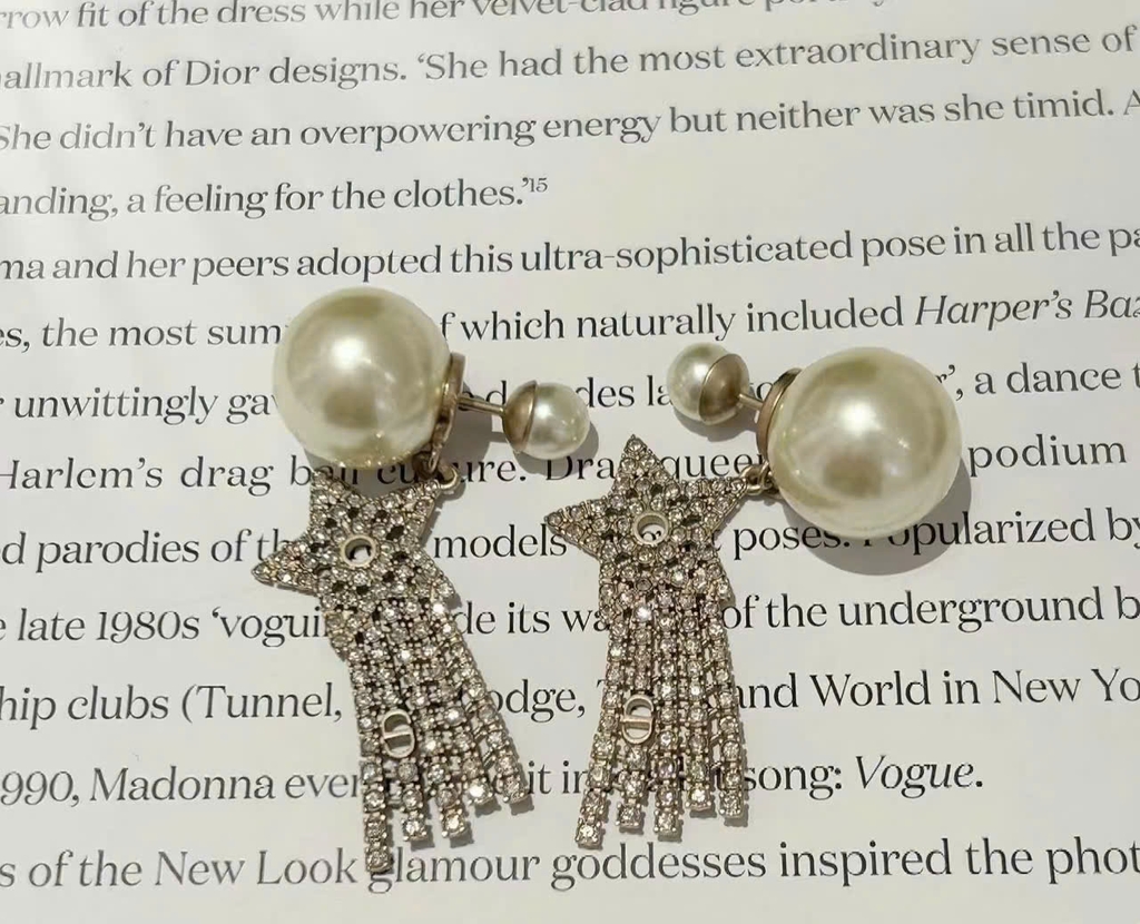 Bông tai thiết kế dạng ngọc trai đôi tinh tế kết hợp charm ngôi sao đính đá lấp lánh, tạo hiệu ứng rủ nhẹ vô cùng nổi bật. Kiểu dáng sang trọng nhưng vẫn trẻ trung, phù hợp đeo đi làm, đi tiệc hoặc phối cùng các outfit thời trang hằng ngày.