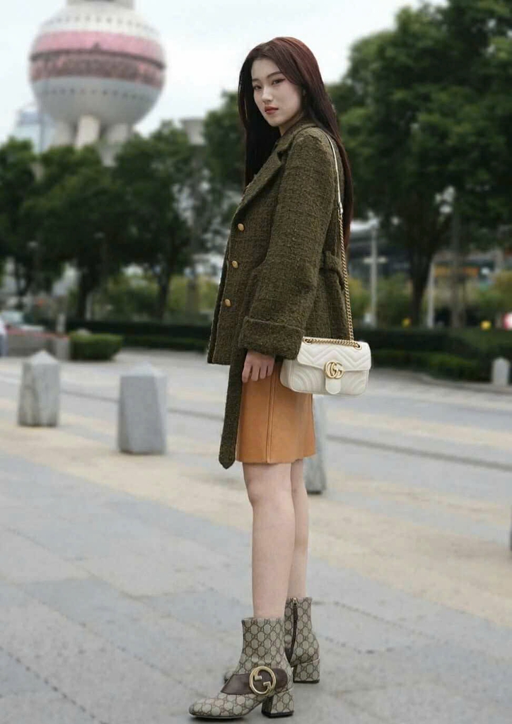 Đôi boot Gucci cao cấp với họa tiết GG monogram đặc trưng, kết hợp điểm nhấn da nâu mềm mại và khoá kim loại logo nổi bật. Thiết kế cổ lửng, form đứng dáng giúp tôn chân và dễ phối với váy, quần jean hay đồ công sở. Gót vuông chắc chắn, mang êm chân và cực kỳ thoải mái khi di chuyển.