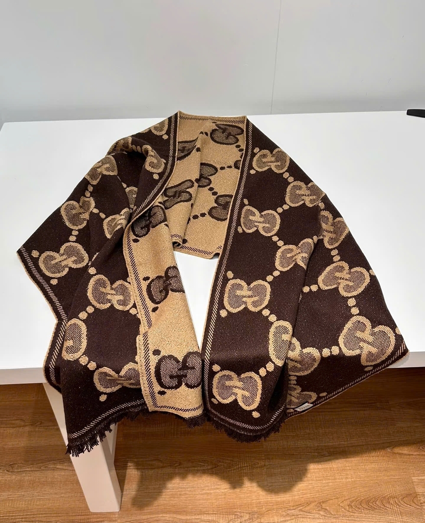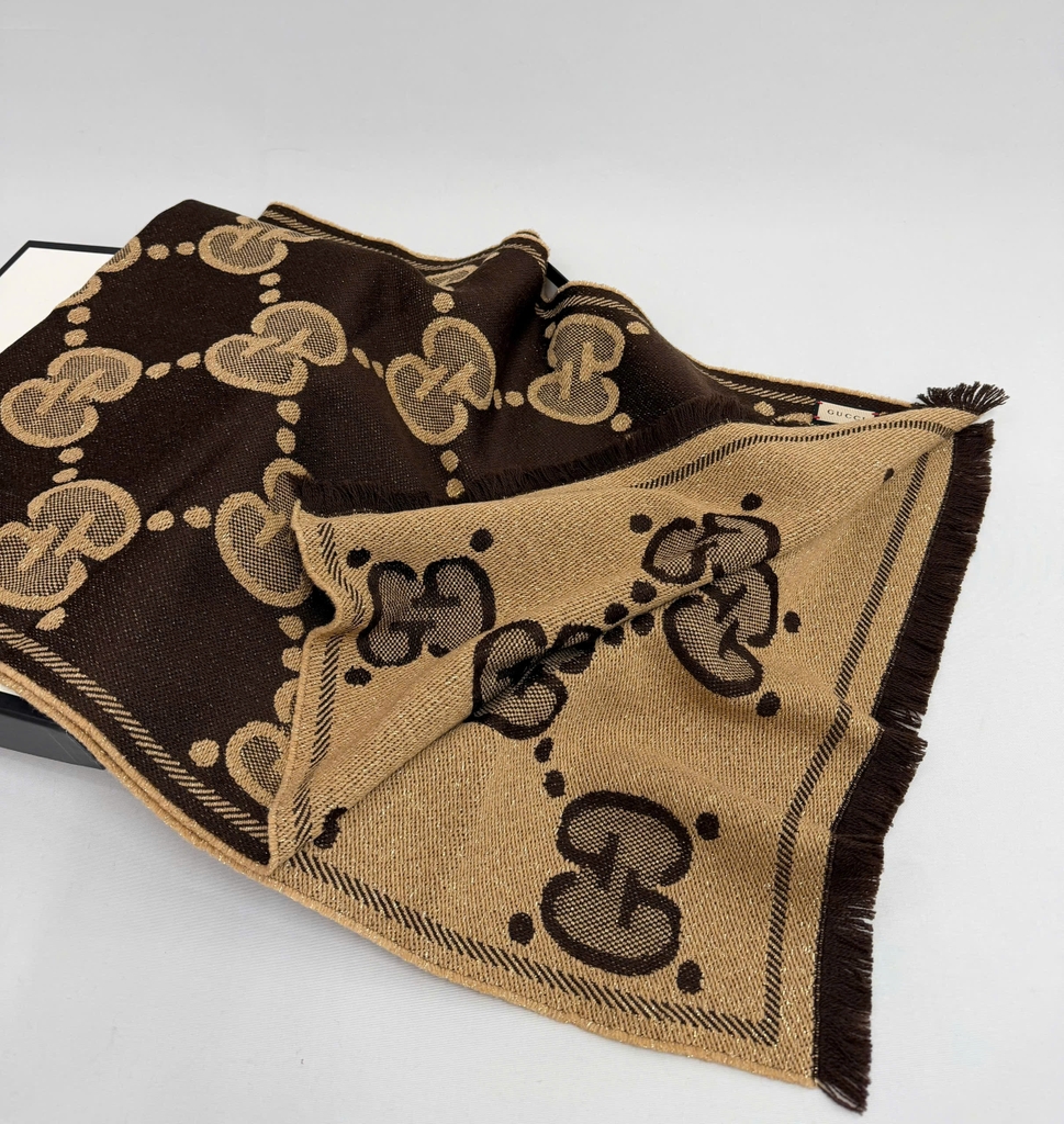 Khăn choàng Gucci biểu tượng GG lồng đôi – thiết kế kinh điển không bao giờ lỗi mốt.