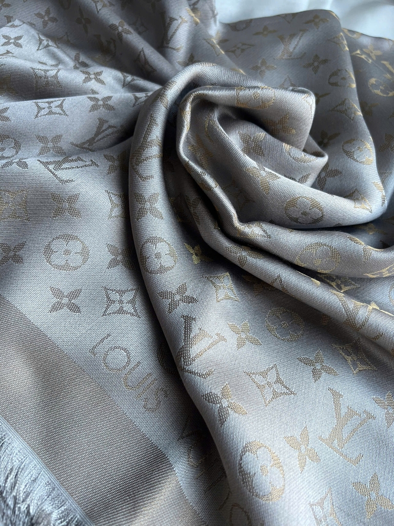 💎 Chất liệu: Lụa satin pha viscose cao cấp – mềm mịn, nhẹ tênh và lên màu sang trọng. Bề mặt dệt jacquard tinh xảo, họa tiết Monogram Louis Vuitton biểu tượng của sự tinh tế và thời thượng.