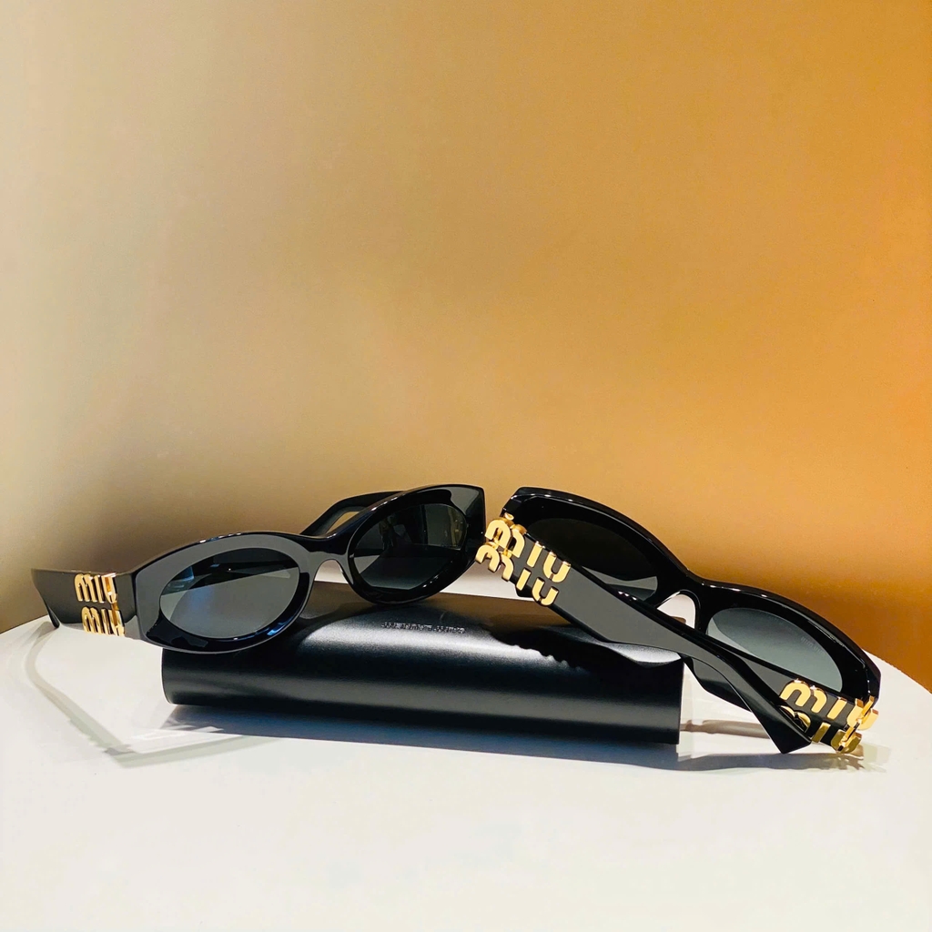 Miu Miu newss kính đen mắt mèo, gọng logo vàng cực hot ạ, choáy lắm các chế ưi