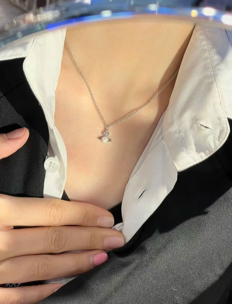 Chiếc dây chuyền với Set Vivienne Balbina, biểu tượng quyền lực và phong cách Anh quốc. Thiết kế tinh xảo, ánh vàng sang trọng kết hợp viên ngọc trai nhẹ nhàng – vừa thanh thoát, vừa nổi bật. 💎