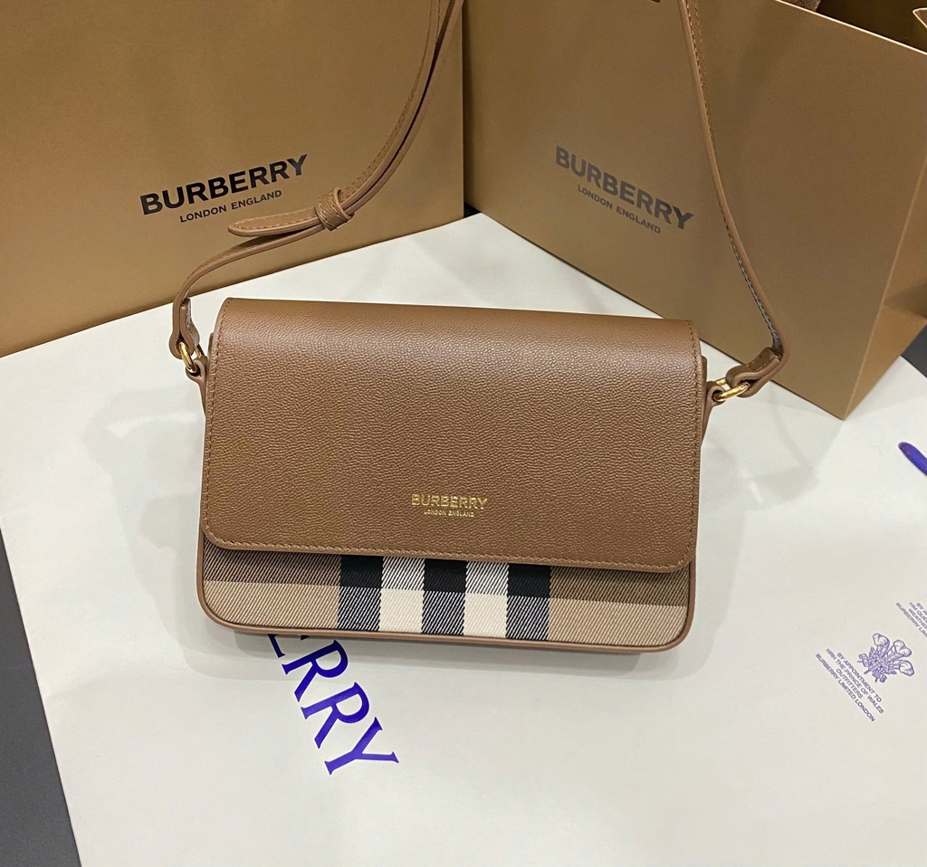 Thiết kế túi đeo vai Burberry với phần nắp da trơn màu nâu sang trọng kết hợp họa tiết caro kinh điển phía dưới. Form túi gọn gàng, thanh lịch, cực dễ phối outfit từ công sở đến dạo phố. Dây đeo điều chỉnh linh hoạt, đeo vai hay đeo chéo đều xinh. Bên trong chia ngăn tiện lợi, đủ đựng điện thoại, ví tiền và các vật dụng cá nhân.