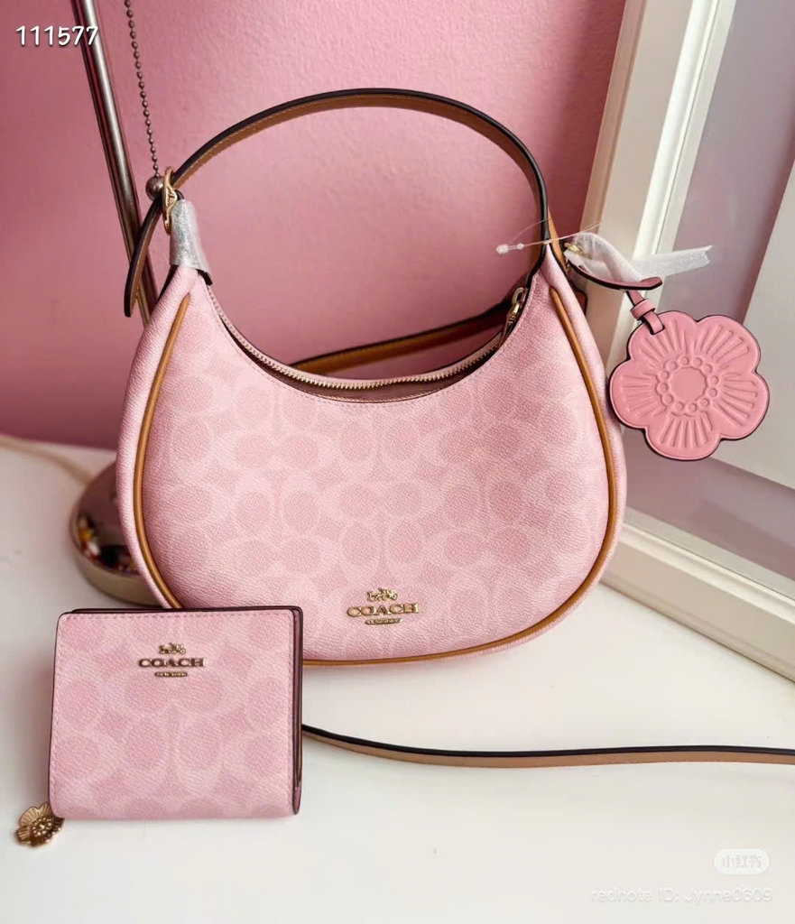 - Đi kèm ví nhỏ cùng tông và charm hoa xinh xắn tạo điểm nhấn.