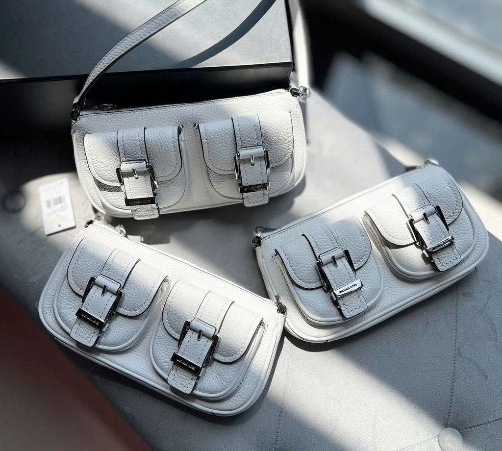 Thiết kế: Dáng shoulder bag thời thượng, nắp gập với khóa xoay MK kim loại ánh vàng sang trọng.