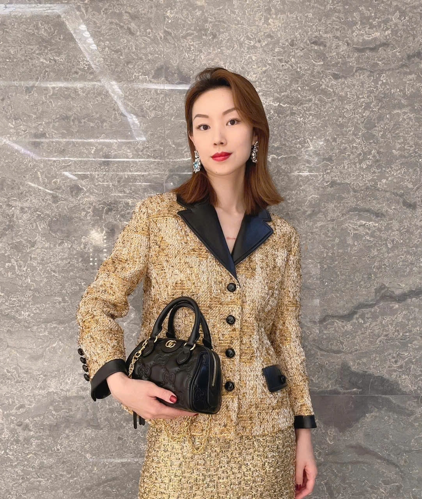 - Biểu tượng logo GG thương hiệu Gucci tông màu vàng tạo điểm nhấn.