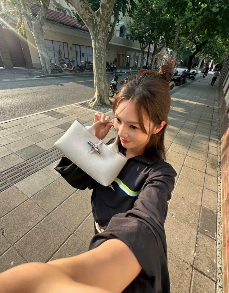 Khóa kim loại sáng bóng đặc trưng Longchamp.