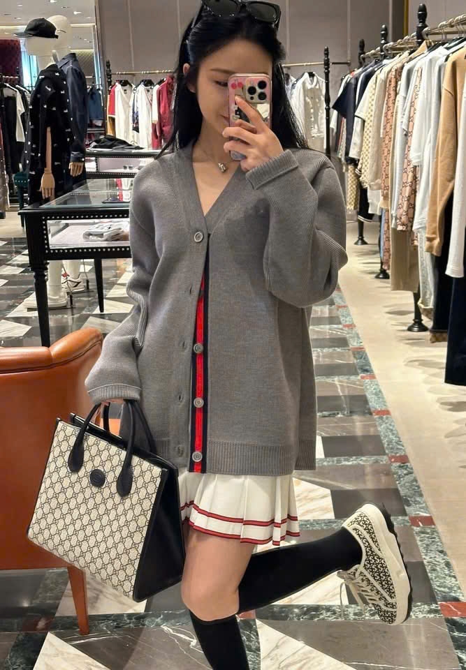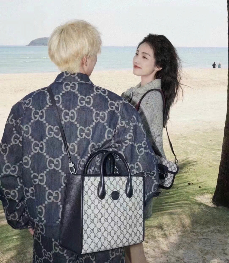 Chiếc túi tote đến từ Gucci gây ấn tượng với họa tiết GG monogram kinh điển trên nền canvas sang trọng, kết hợp viền và quai da đen tinh tế. Form túi cứng cáp, thiết kế rộng rãi giúp nàng dễ dàng mang theo nhiều vật dụng cần thiết như điện thoại, ví, mỹ phẩm hay sổ tay. Túi có tay cầm chắc chắn và kèm dây đeo chéo tiện lợi, phù hợp cho cả đi làm, đi chơi hoặc dạo phố.