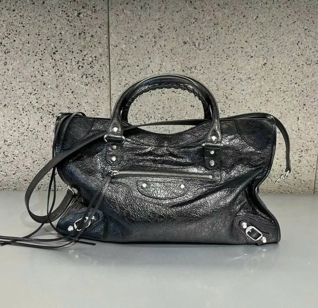 Thiết kế trứ danh với form mềm, chi tiết đinh tán kim loại và dây da tua rua cá tính – Balenciaga City Bag luôn là item yêu thích của những cô nàng sành điệu 💼✨