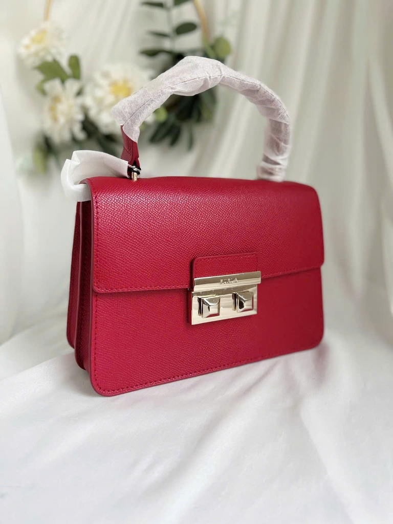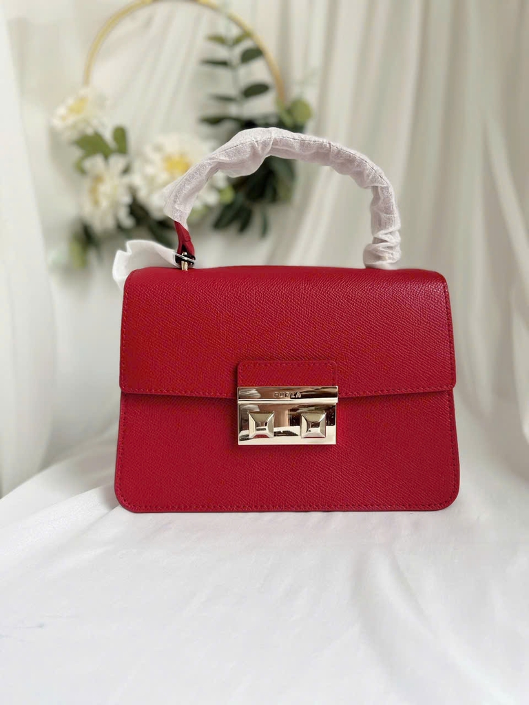 Thiết kế: Dáng Top Handle thanh lịch với chi tiết khóa kim loại vàng khắc logo Furla nổi bật.