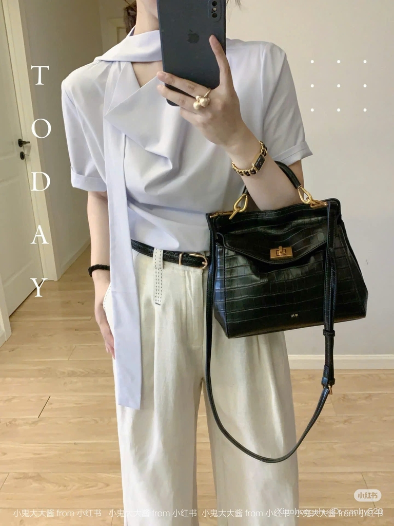 Thiết kế: Dáng top handle cổ điển kết hợp khóa kim loại ánh vàng sang trọng.