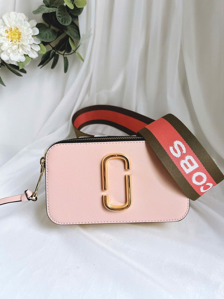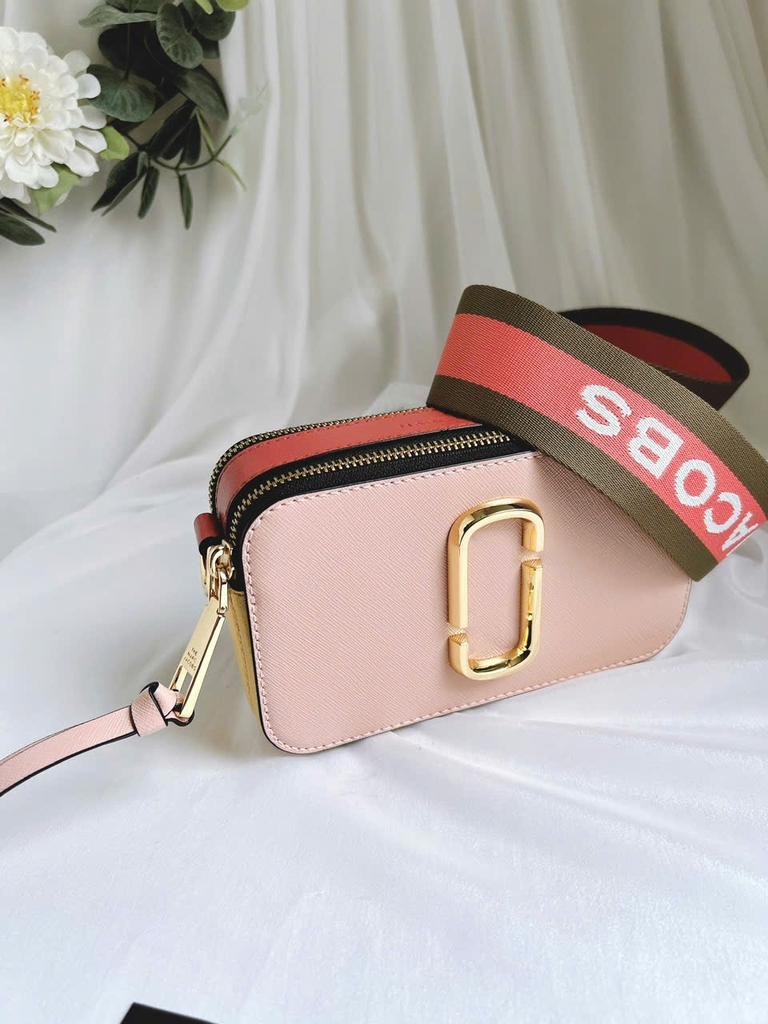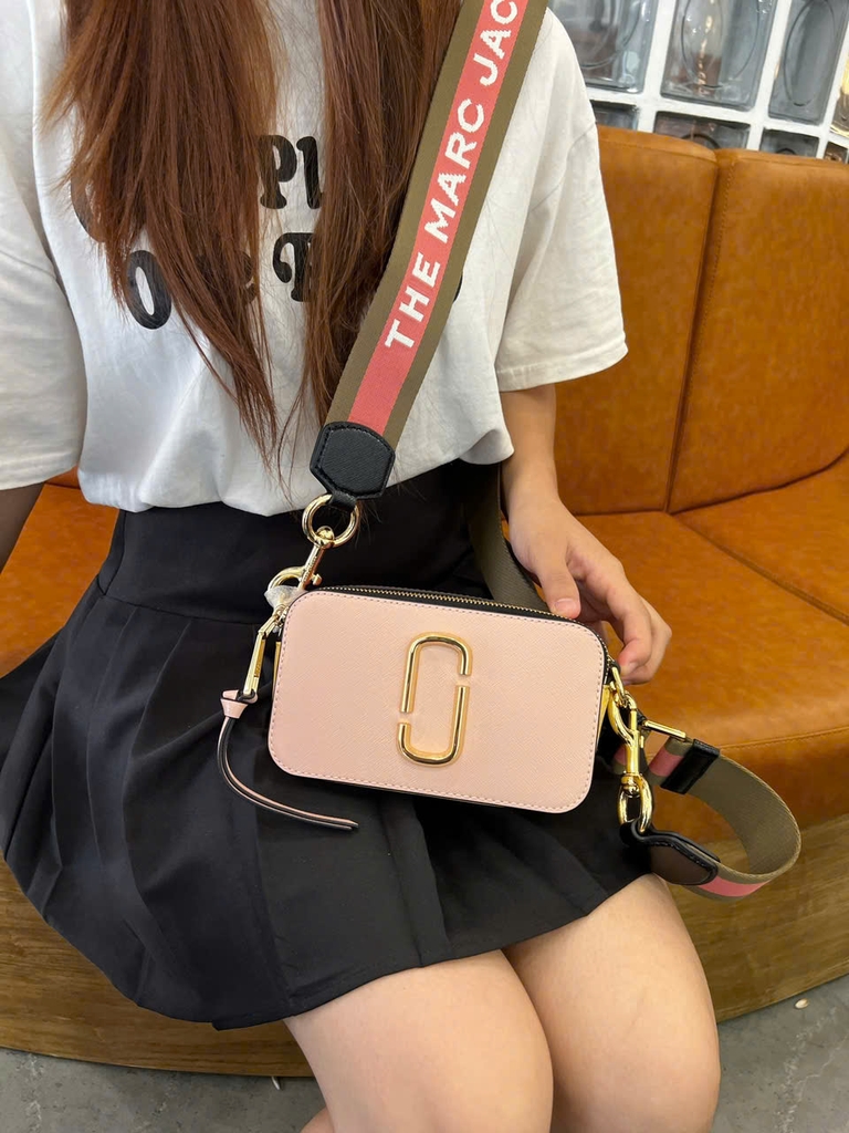 Thiết kế box bag nhỏ gọn từ nhà Marc Jacobs, chất da cứng cáp giữ form chuẩn đẹp. Tone hồng pastel nhẹ nhàng, nữ tính, kết hợp logo kim loại nổi bật tạo điểm nhấn sang xịn. Dây đeo bản to phối màu cá tính, có thể tháo rời linh hoạt – mix outfit nào cũng xinh.