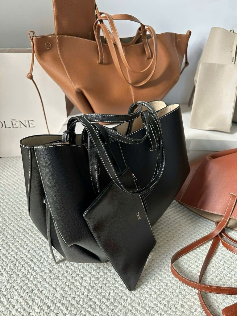 Túi tote Polène form rộng, thiết kế tinh tế đến từng đường may. Với màu đen basic không lỗi mốt, chiếc túi này dễ dàng mix cùng mọi outfit – từ công sở đến dạo phố. Có thể đeo vai hoặc xách tay tiện lợi.