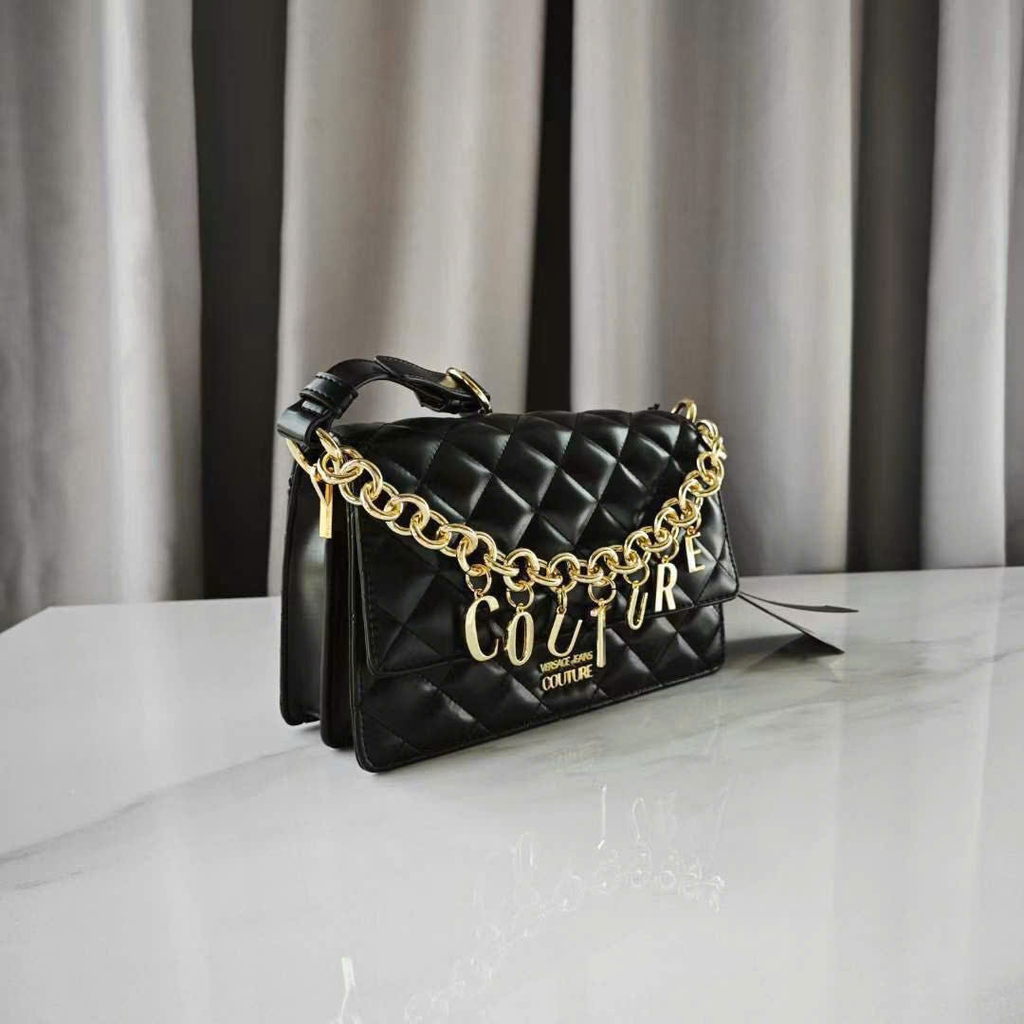 Túi Versace Jeans Couture thiết kế sang chảnh với phom chữ nhật mềm, chất liệu da cao cấp bền đẹp. Bề mặt chần bông sang trọng, điểm nhấn nằm ở dây xích vàng bản lớn kèm charm chữ COUTURE cực thời thượng – lên tay nổi bật ngay lập tức. Form túi gọn gàng, đựng vừa điện thoại, ví, son… phù hợp đi chơi – đi tiệc – dạo phố phong cách.
