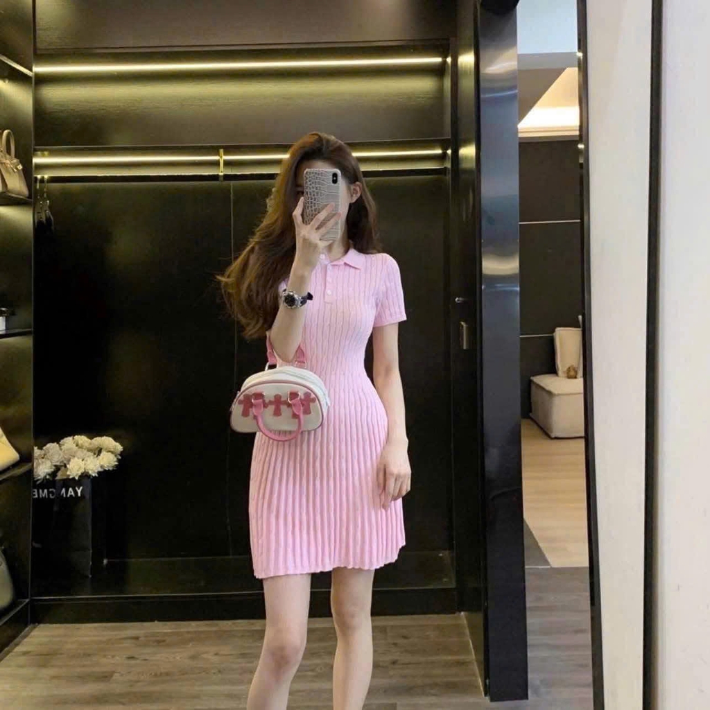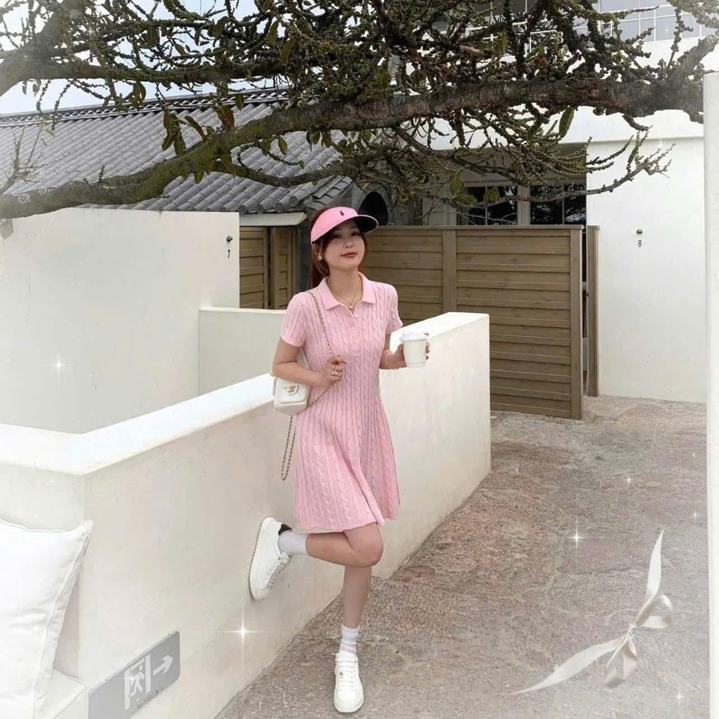 Đầm len dáng xoè nhẹ, cổ polo cài nút, chất len dệt cao cấp co giãn tốt – giữ form chuẩn và cực kỳ tôn dáng.